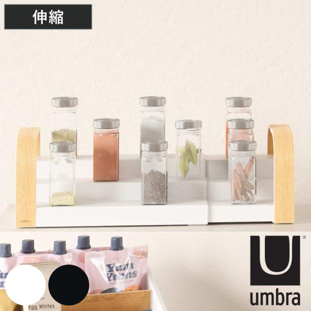 umbra 調味料ラック ベルウッド スパイスラック 3段 ( アンブラ キッチン 調味料 収納 調味料入れ スタンド 木目 伸縮 おしゃれ コスメボックス 整理 小物ケース 持ち運び 仕切り ハンドル ホワイト キッチン収納 )