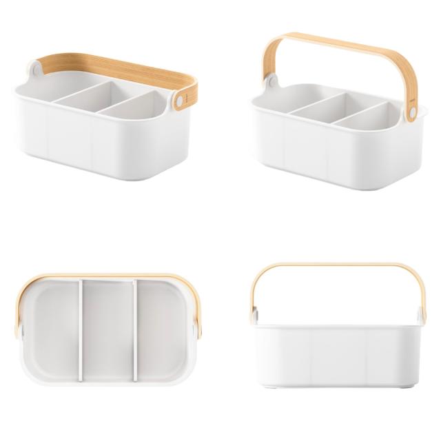 キッチン以外でも、洗面所では化粧品ボトル・ソープボトルなどを収納できます。ハンドル一体型で持ち運びが簡単なので、様々な場所で活躍します。