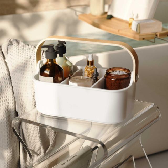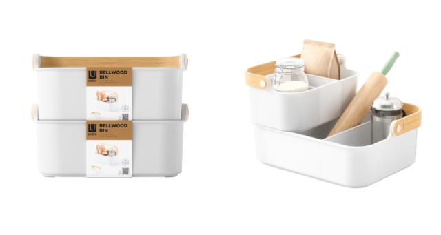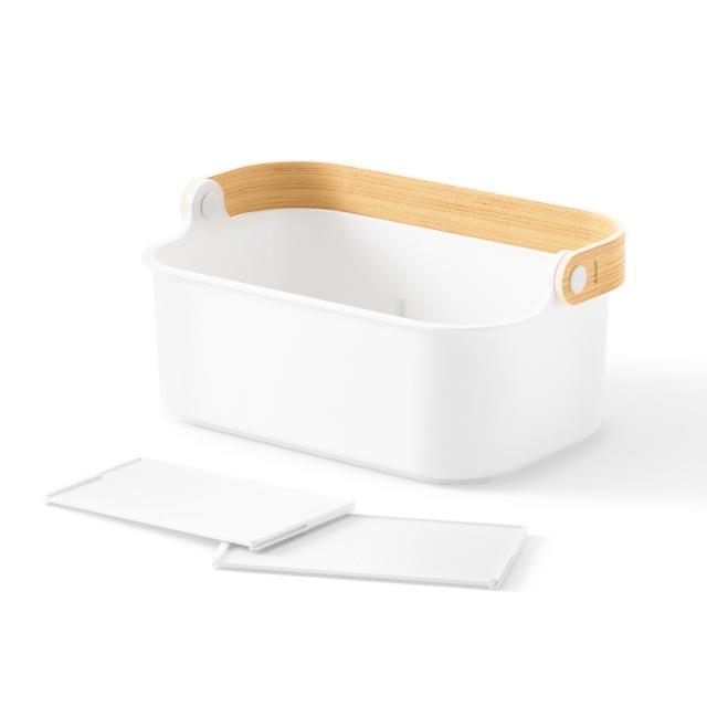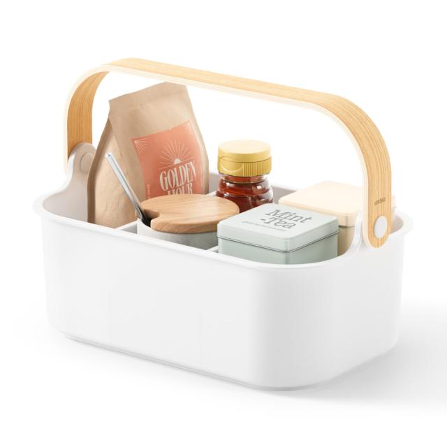 umbra 小物収納 ベルウッド スタッカブルビン28×17cm ( アンブラ キッチン 調味料 収納 スパイスラック 調味料入れ 木目 スタッキング おしゃれ コスメボックス 整理 小物ケース 持ち運び 仕切り ハンドル ホワイト キッチン収納 )