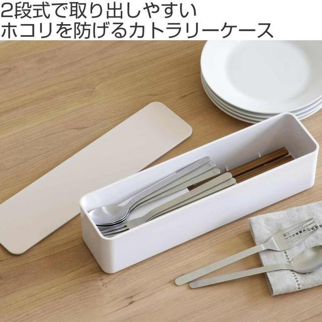 カトラリーケース 分けて収納できるカトラリーケース ( カトラリー収納 カトラリートレー 蓋付き 日本製 2段 箸入れ 卓上 箸 フォーク スプーン 整理ケース 小物収納 カウンター上 キッチン収納 ホコリ防止 おしゃれ )