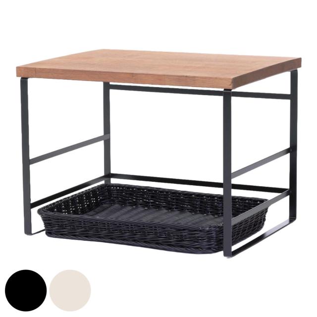 | 材質 | 本体:スチール(メラミン樹脂焼付塗装) 天板:ラバーウッド(オイルステイン仕上げ) バスケット:ポリプロピレン 保護パット:ポリエステル |