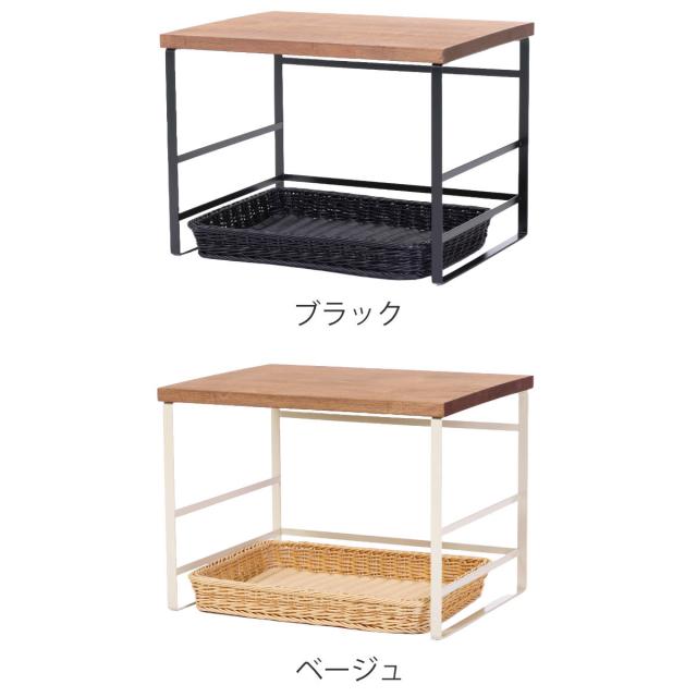 キッチンラック ラバーウッドトースターラック バスケット付き ( トースターラック 家電ラック スチール キッチン収納 トースター用ラック レンジ上収納 レンジ上ラック トースター台 オープンラック かご )