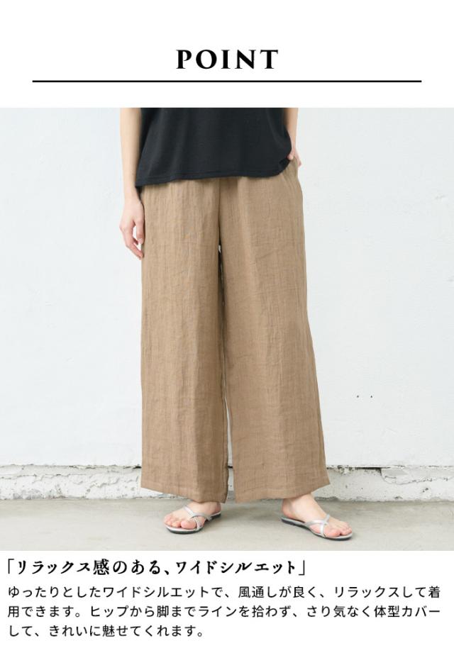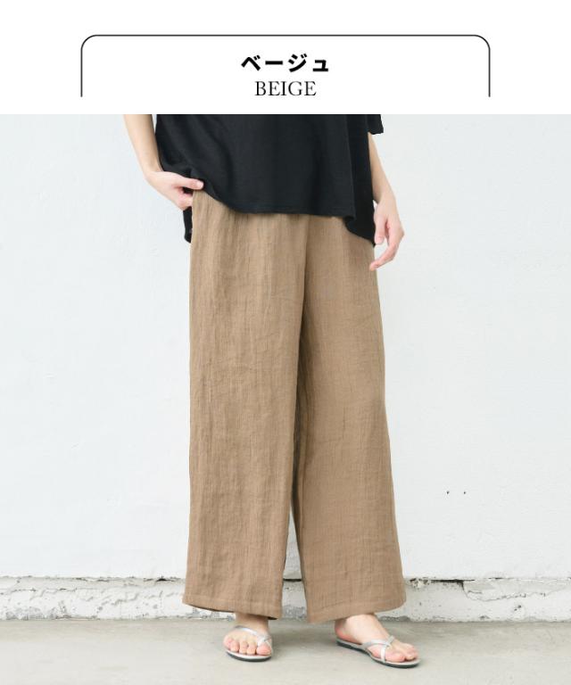 ジャパンリネン ストライプ 二重織 ワイドパンツ 日本製 / パンツ リネン レディース 麻 40代 50代 60代 30代 リネン100% 麻100% きれいめ ゆったり ウエストゴム 春物 春 夏 総ゴム 体型カバー すっきり