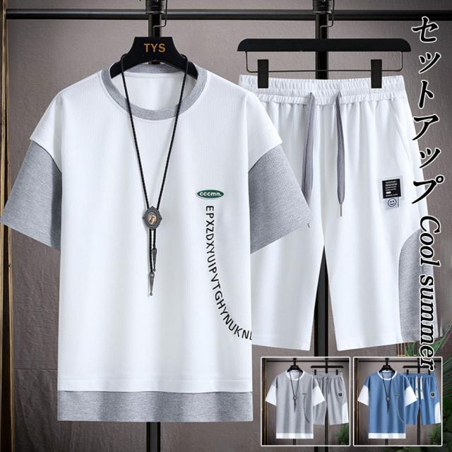 セットアップ メンズ 上下セット 夏 ゆったり tシャツ ハーフパンツ 半袖 カジュアル 涼しい シンプル 薄手 夏新作 接触冷感