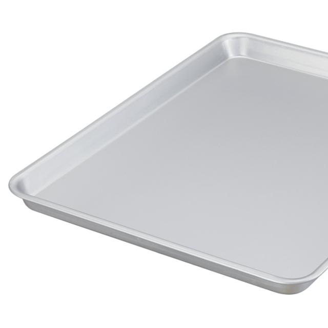 鉄に比べて軽量で扱いやすいアルミ製天板です。パン作りやお菓子作り用天板としてはもちろん、調理の下ごしらえや食材の一時置きなど様々な用途で活用できます。アルミは熱伝導性が良く、熱しやすく冷めやすいのが特徴です。その為、オーブンでは食材に焼きムラが無くきれいに焼きあげることができます。また、冷蔵庫に食材をそのまま入れて素早く冷やすことができます。