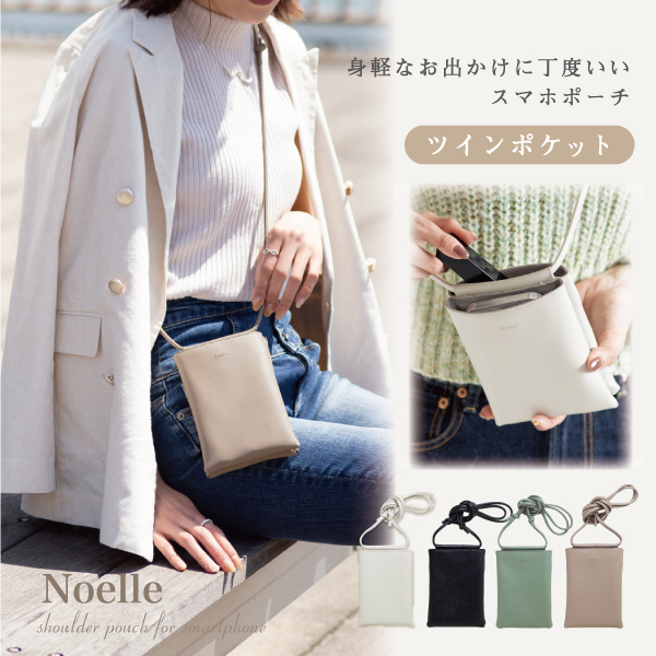 スマホポーチ スマホショルダー スマホ ポーチ ショルダー ショルダーバッグ レディース スマホケース バッグ ポシェット ストラップ ツインポケット iphone ケース サコッシュ カード 小銭入れ 多機種対応 xperia android aquos pixel 小さめ 小さい 軽量 ミニサイズ PUレザー 可愛い お洒落 フェイクレザー ナイロン 大容量 ギフト プレゼント 誕生日 バレンタイン ホワイトデー 母の日 かわいい シンプル 上品 女の子 女子 メンズ ユニセックス ブラック ライト ベージュ カーキ オリーブ NATURALdesign ナチュラルデザイン Noelle
