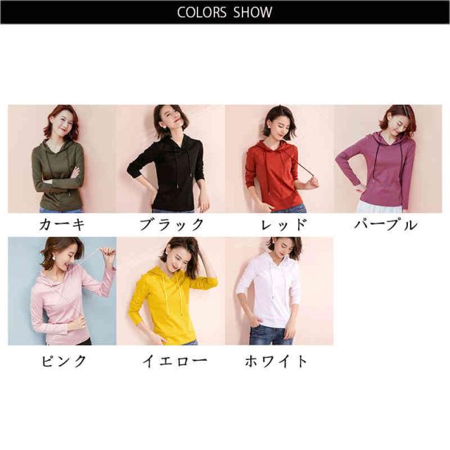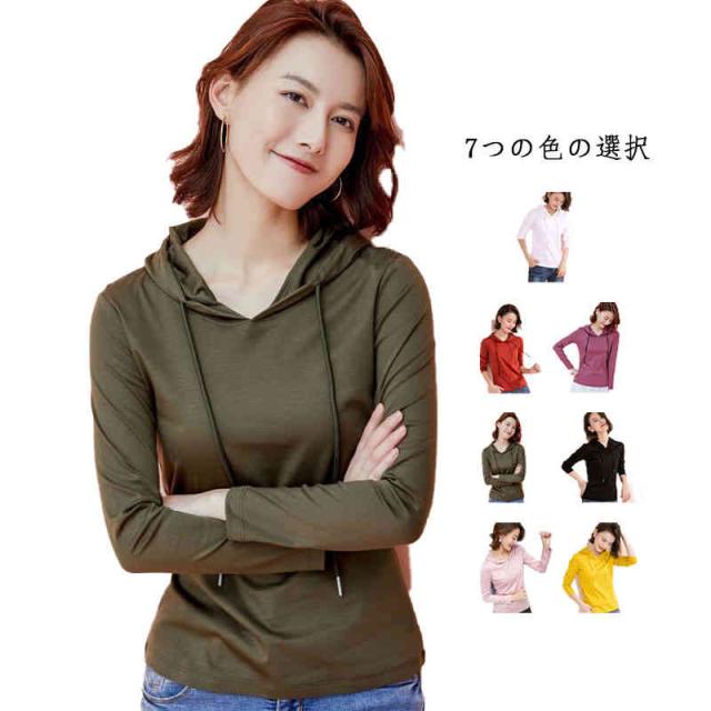 春 長袖tシャツ フード付きtシャツ プルオーバー 無地tシャツ レディース tシャツ 秋 シンプル トレーナー トップス 送料無料 長袖 パーカー 長袖 ルームウエア おしゃれ パーカー 長袖プルオーバー 長袖トップス きれいめ フード付きtシャツ