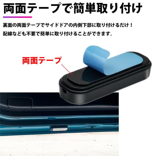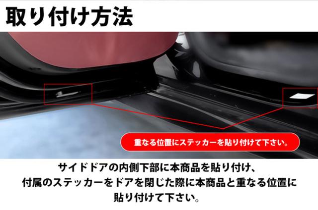 サイドドアの内側下部に本商品を貼り付け、付属のステッカーをドアを閉じた際に本商品と重なる位置に貼り付けて下さい。