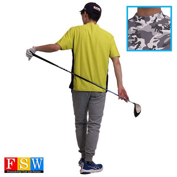 ゴルフウェア メンズ 夏 モックネック 半袖 tシャツ スポーツ ブランド 撥水 ドライ シニア 父の日 水陸両用 UV 迷彩 カモフラ フィットネス 4233-6343