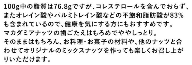 塩も油も一切使用していません。マカダミアナッツそのままの甘みとサクサク食感をお楽しみください。お酒のおつまみにも!