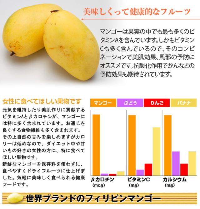 完熟マンゴーを絶妙な風味・甘みのドライマンゴーに仕上げました。セブ島産のカラパオ種新鮮マンゴーが原料です。加工食品のトッピングに適した色味の変化を防いだドライマンゴーです。