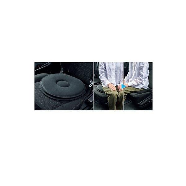 ■商品仕様:座面が回転することで身体の向きを簡単に変えられ、乗り降りをサポートする座布団型のクッションです。材質:【表皮材】ポリエステル、【クッション材】ウレタン、樹脂(PET)。取付位置:助手席、セカンドシート左右席。