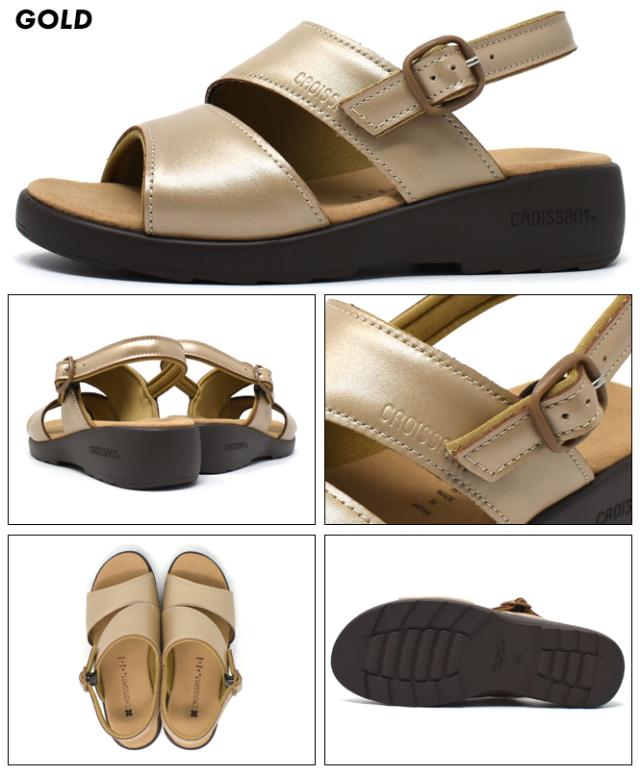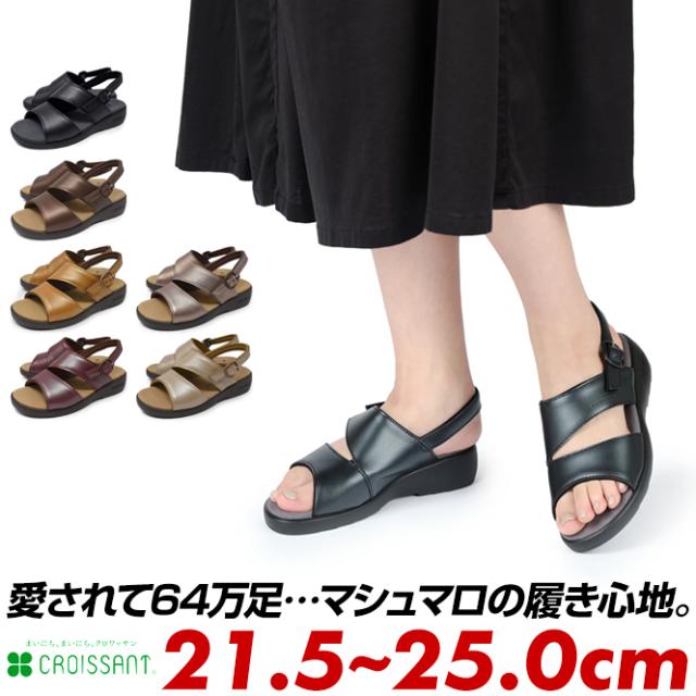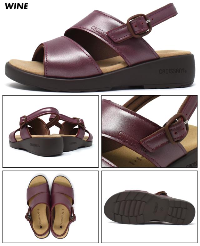 CROISSANT サンダル レディース 本革 ウェッジソール オフィスサンダル ナースサンダル 2E 痛くない 歩きやすい 履きやすい 疲れない 日本製 国産 クロワッサン ウェッジサンダル ストレッチ サイドゴア 春新作 ポイント消化