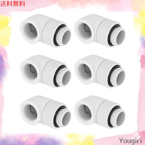 Dracaena 6個パック, G1/4インチ オス-メス エクステンダー継手 90°回転 シルバー, コンピューター水冷システム用, 白色