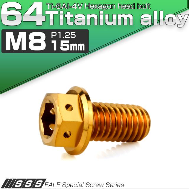 チタンボルト M8×15mm P1.25 六角ボルト 六角穴付き ホールヘッド フランジボルト ゴールド JA1775