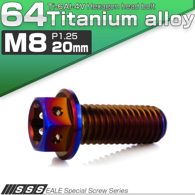 チタンボルト M8×20mm P1.25 六角ボルト 六角穴付き ホールヘッド フランジボルト 焼きチタンカラー JA1779
