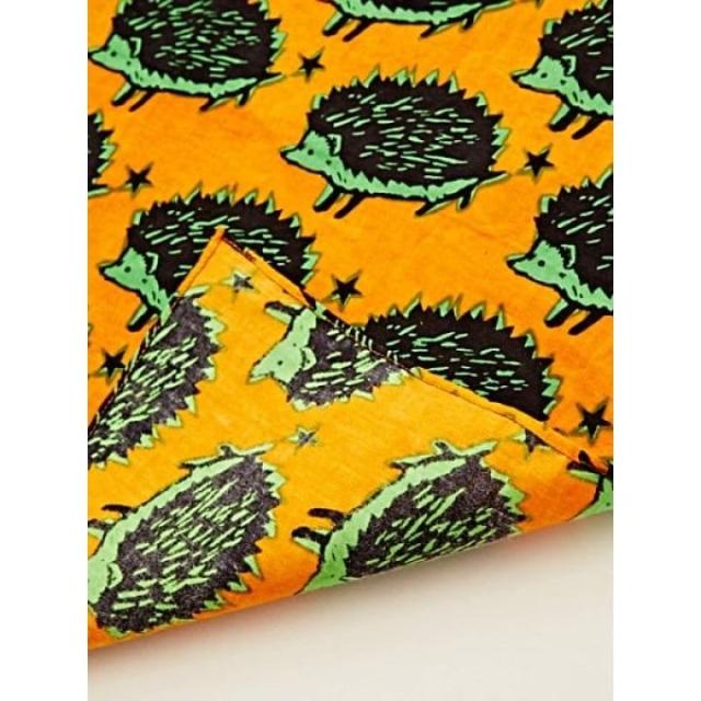 元気なアフリカンプリント風のアニマル柄バンダナ。頭や髪に巻いてヘアアクセサリーにしたり、手首に巻いてブレスレット、バッグの持ち手のアクセントなどに。ボタン&ループ付きで、食事の時に首に巻いてお洋服の汚れ防止や、パンツのベルトループに掛けてアウトドアなどでも大活躍。ユニセックスでお使いいただけるデザイン。