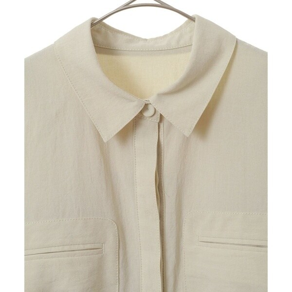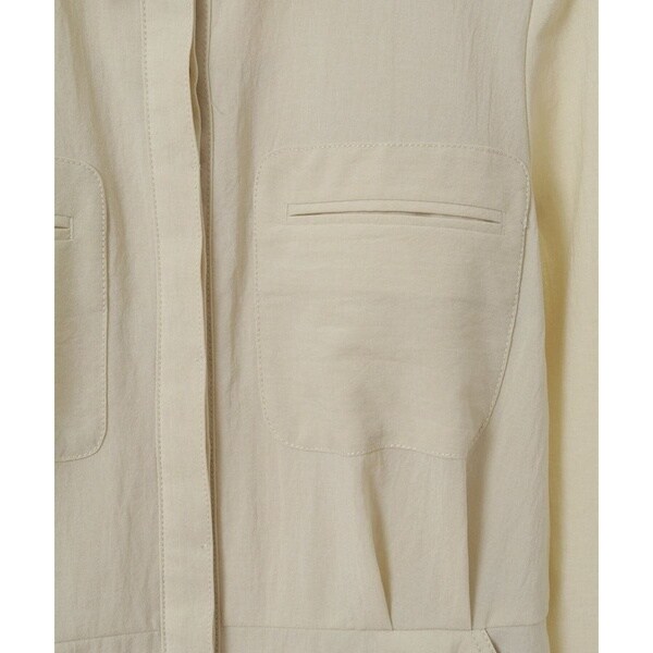 存在感のある胸元のパッチポケットや同色でまとめたくるみボタンやステッチを合わせた品のあるディテール。