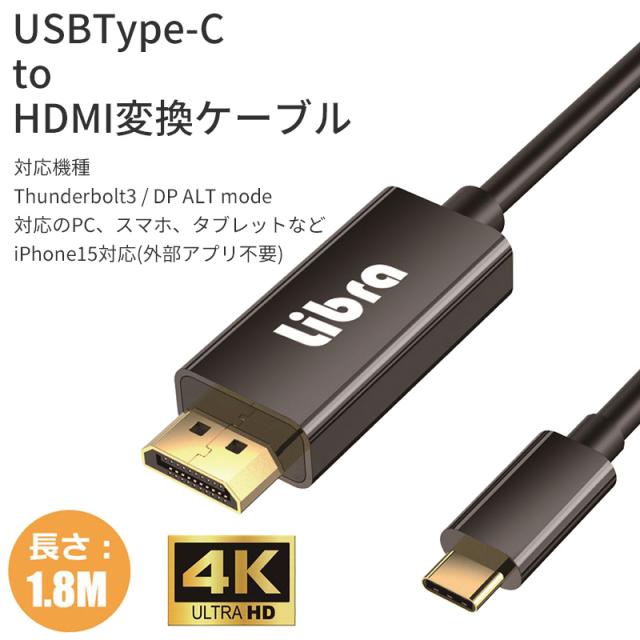 HDMIケーブル USB Type-C HDMI 変換ケーブル 4K60Hz対応 タイプC 1.8m 通信 スマホ typeC テレビ