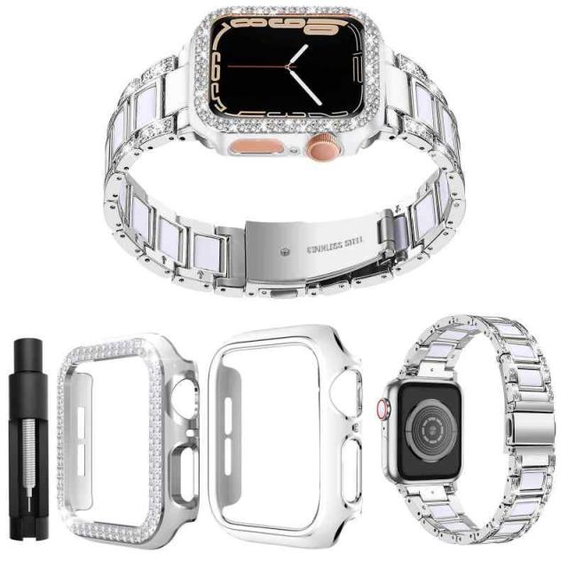 for Apple Watch 用 バンド アップルウォッチバンド ダイヤモンド+樹脂バンド 2個の保護ケース付き ダイヤモンドバンド ケース Apple watchケース 長さ調整ツール付き Apple Watch 交換バンド ステンレス製バンド 軽量 装着簡単 ビジネスバンド (シルバー, 45)