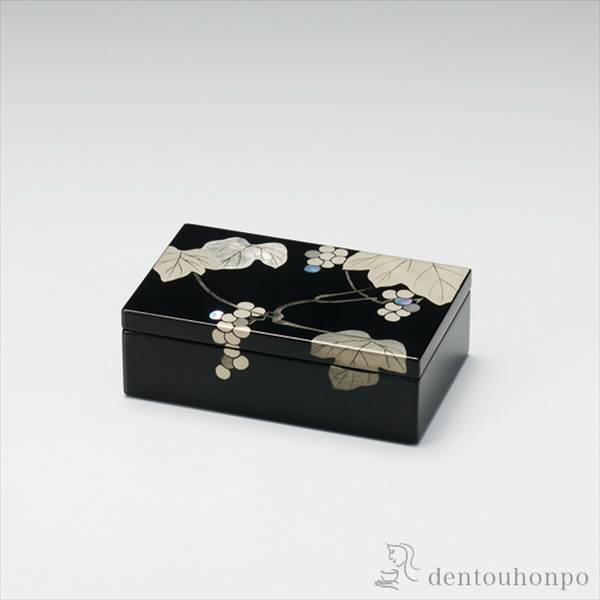 「送料無料」 長小筥 貝入り ぶどう ( 退職祝い 定年 アクセサリー入れ 収納ボックス ケース BOX 宝物 越前漆器 結婚 出産 )