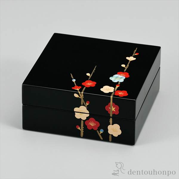 「送料無料」 角小筥 貝入り 紅白梅 ( 退職祝い 定年 アクセサリー入れ 収納ボックス ケース BOX 宝物 越前漆器 結婚 出産 )