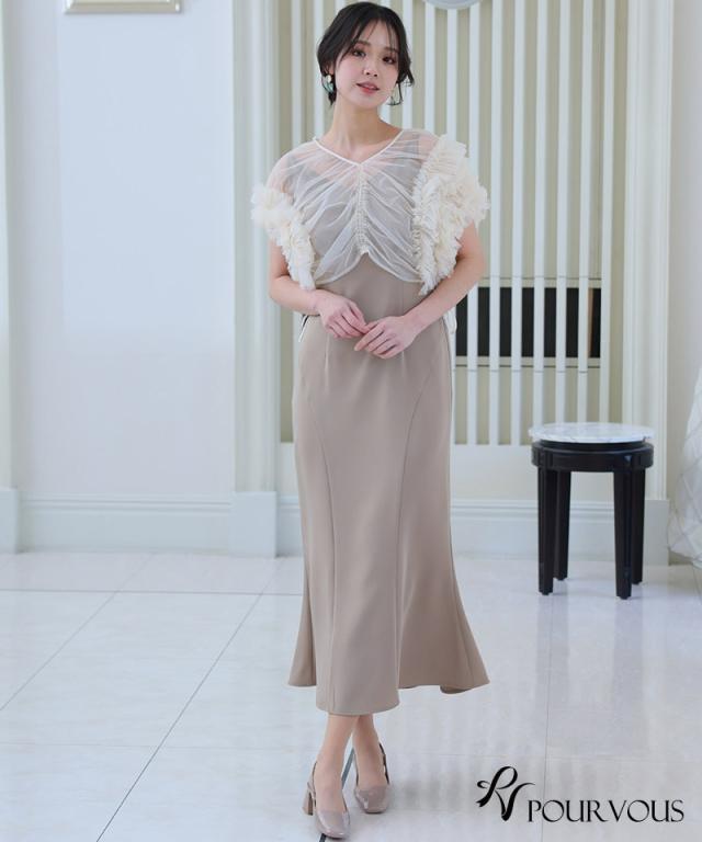 ギャザーチュールトップスワンピース【942241378】10代・20代・30代・40代・50代・ドレスワンピ・フォーマルワンピ・パンツドレス・服装・ワンピース・ドレスカジュアル・ブランド・七分袖・長袖・ロング・膝丈・薄手・厚手・無地・刺繍・脚長効果・伸縮性・キレイめ・着やせ・体型カバー・スタイルアップ・レース・リボン・ドレープ・小さいサイズ・3Lや4L・かっこいい・かわいい・即日発送・送料無料・結婚式・婚活・披露宴・顔合わせ・発表会・演奏会・二次会・同窓会・お呼ばれ・食事会・謝恩会・親族・七五三・お宮参り・冠婚葬祭・弔事・女子会・韓国・デート・入学式・卒業式・入園式・卒園式・ママ・ピアノ・マタニティー・セレモニー・セレブ・パーティー