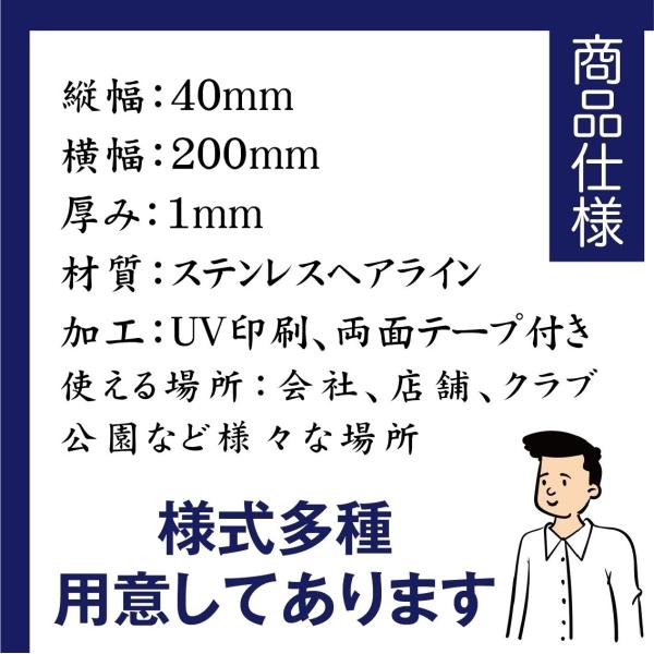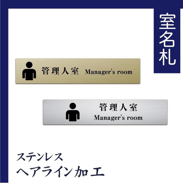 室名札 ステンレス製 200mmx40mm オリジナル室名プレート 管理人室 管理人室表札 UV印刷(ステンレスヘアライン加工/厚み1mm)