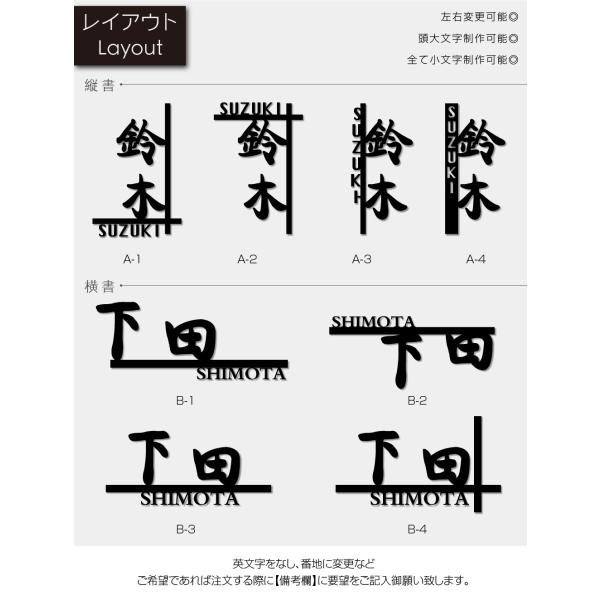 記載内容が無い場合は表札の制作が遅れますのでご注意ください。