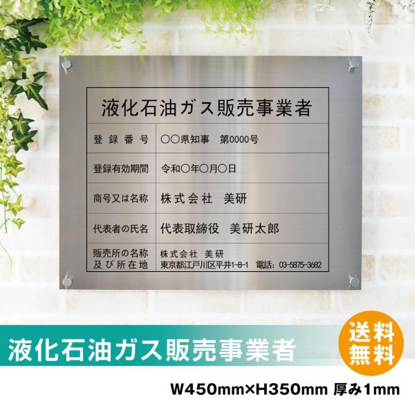 液化石油ガス販売事業者 高級スレンレス製看板 ヘアライン UV印刷 看板 送料無料 【内容印刷込】 屋内用 ◎ H350×W450mm