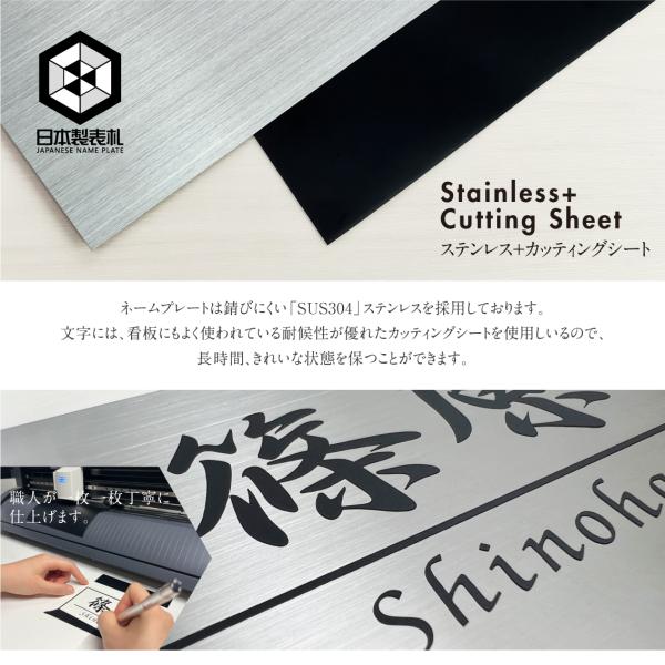 表札 戸建て おしゃれ タイル 北欧 ステンレス 光沢感 長持ち 接着剤付き 送料無料 タイル表札 ステンレス表札 高級表札 W227mm×H60mm