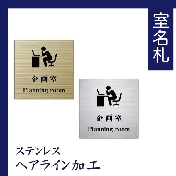 室名札 ステンレス製 100mmx100mm オリジナル室名プレート 企画室 企画室表札 UV印刷(ステンレスヘアライン加工/厚み1mm)