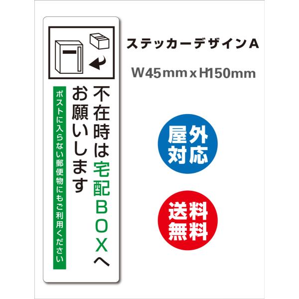 宅配BOX 耐水 不在ボックス 留守 宅配便 宅急便 宅配ボックス サイン ステッカーシール 150x45mm 屋内外対応 糊付き 送料無料 縦型