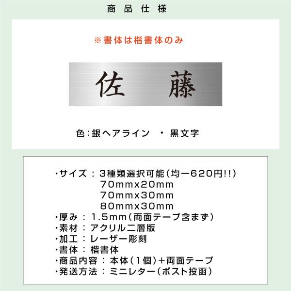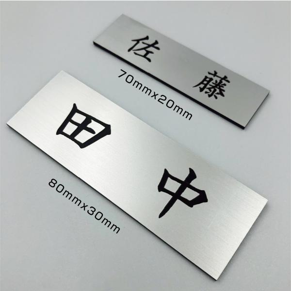 表札 ステンレス調カラー【大量注文承ります】銀ヘアライン アクリル二層版 ミニプレート ポストやロッカーに最適 シンプル 小さい 3サイズ均一価格