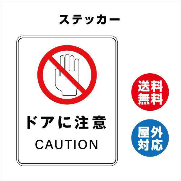 ドアに注意 サイン ステッカーシール 多言語標識 言語表記あり 140x180mm 屋内外対応 糊付き 送料無料