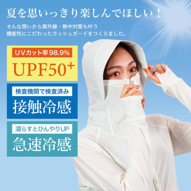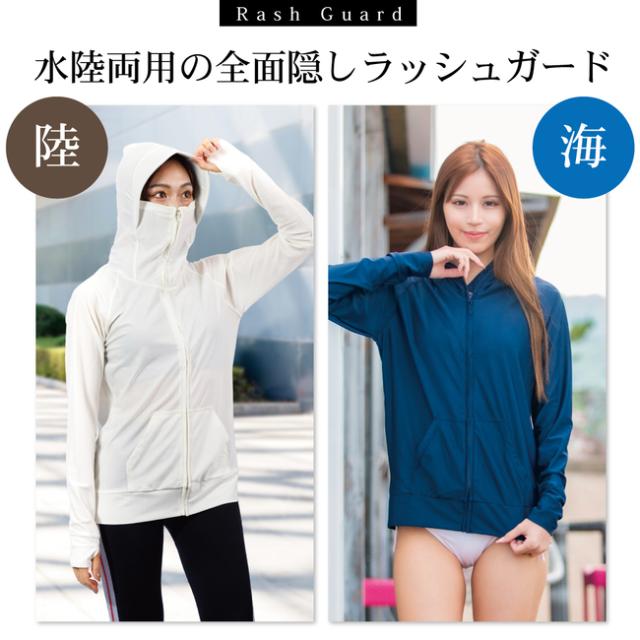 ラッシュガード レディース 顔隠し つば付 『日光を徹底的に守るラッシュガード』 水着 丈長め オーバーウェア パーカー 長袖 UVカット UPF50 レビュー 高評価 送料無料