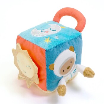 宇宙飛行士のクマをモチーフにした、キューブ型の知育玩具です。