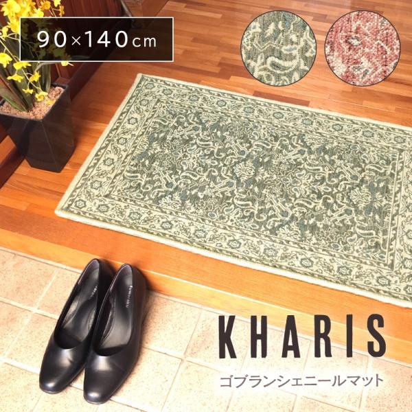 玄関マット マット ラグ 室内 屋内 北欧 おしゃれ カーリス 90×140cm ゴブラン シェニール 滑り止め 滑りにくい シンプル モダン ヴィンテージ グレー ピンク