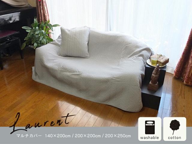マルチカバー 北欧 長方形 キルト 綿100% コットン ローラン 140×200cm ソファーカバー 洗える かけるだけ ホットカーペットカバー ベッドカバー 無地