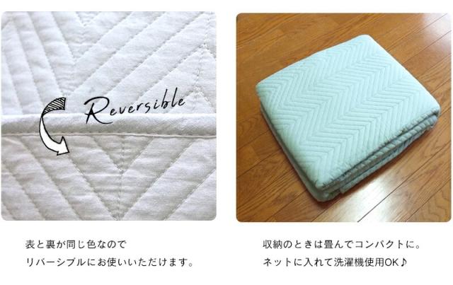 ◆表裏とも使えるリバーシブル仕様のキルト。