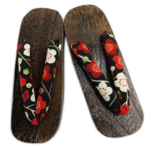 下駄 桐 女性用 大きいサイズ LL 25.5cm 3L 26.5cm 焼桐茶台 黒色地梅枝 浴衣 ゆかた 甚平 レディース 2L げた ゲタ