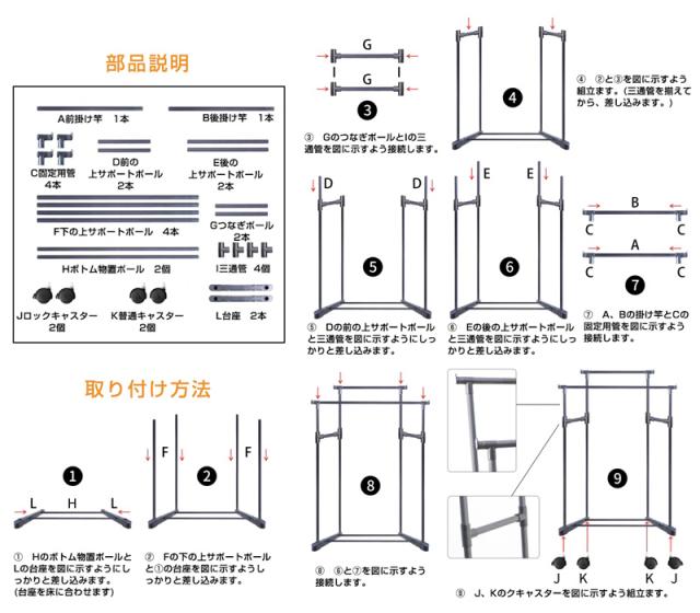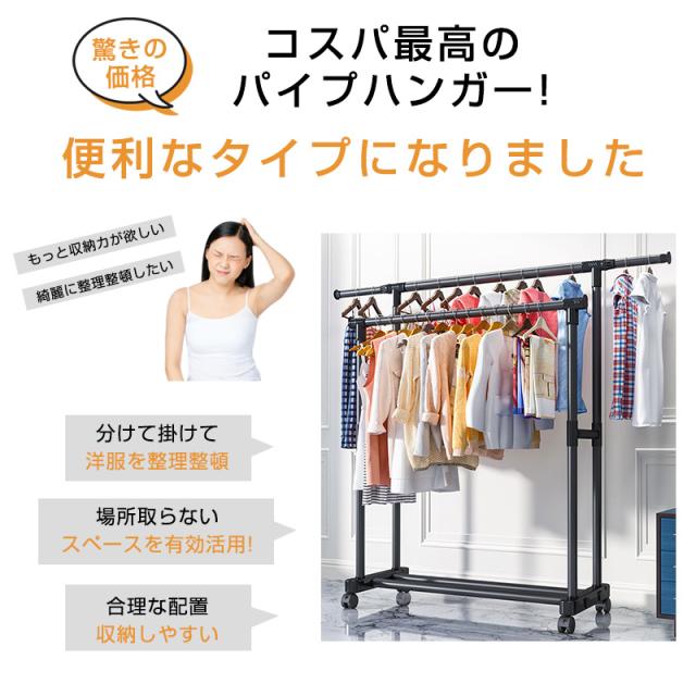 ハンガーラック トローリーハンガー パイプハンガー 頑丈 衣類収納 洗濯物干し スリム 大容量 物干しスタンド 組み立て 高耐荷