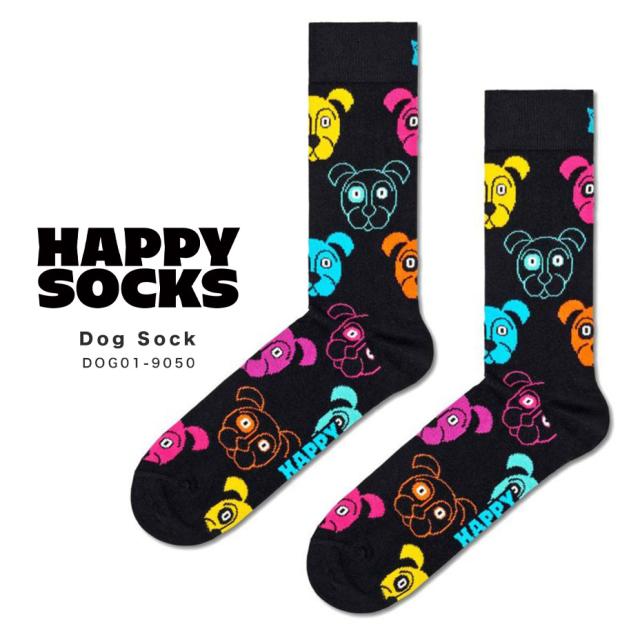 Happy Socks 靴下 レディース メンズ ユニセックス クルー丈 ミドル丈 ソックス下 可愛い 綿 コットン 綿混 ビジネス 総柄 犬 アニマル柄 ブラック 黒 Dog Sock DOG01-9050 ブランド マルチ