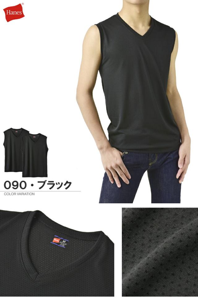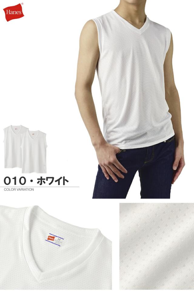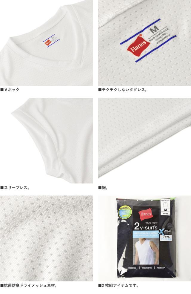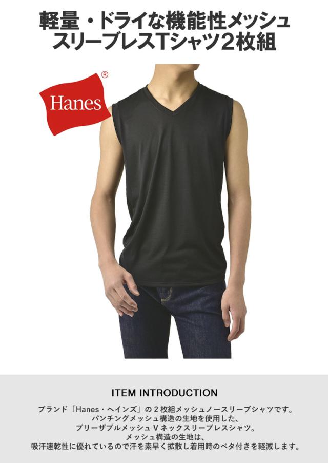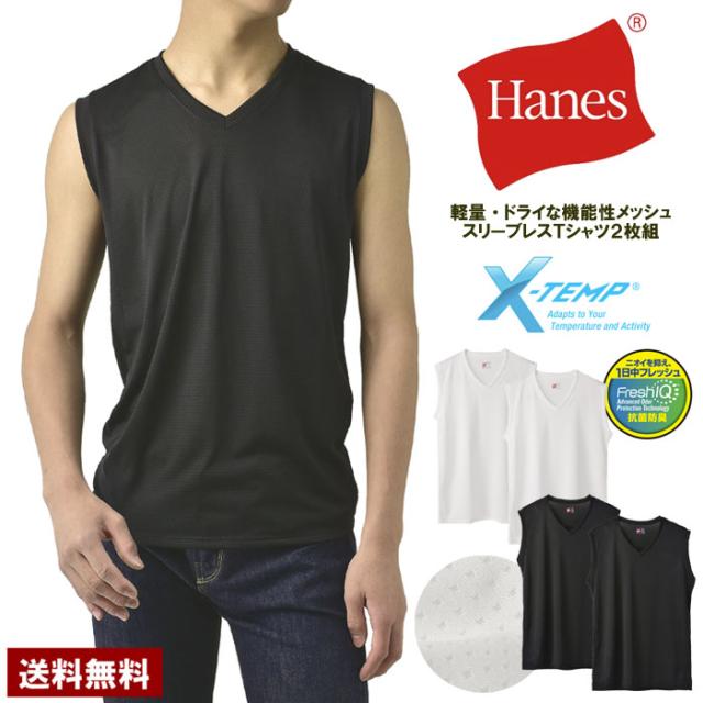 ノースリーブ スリーブレス シャツ メンズ Hanes ヘインズ Vネック メッシュ アンダーウェア 2枚組 Fresh IQ X-TEMP TAGLESS HM3EZ701 正規品【H1I】【パケ1】