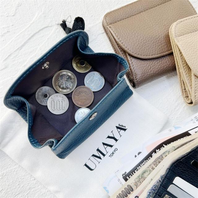 本革 牛革 ミニ財布 ミニウォレット 二つ折り 財布 ちいさい財布 薄型 カードケース コンパクト コインケース じゃばら 小銭入れ コインスルー お札が折れない お札を折らない スキミング防止 上品 おしゃれ オリジナル巾着 プレゼント
