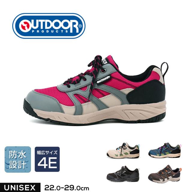 アウトドアプロダクツ アウトドアシューズ メンズ レディース 防水 幅広 4E キャンプ トレッキング ハイキング レースアップ スニーカー ローカット ゆったり 履きやすい 黒 ブラック ベージュ ネイビー ブラウン ピンク ODP-704WS