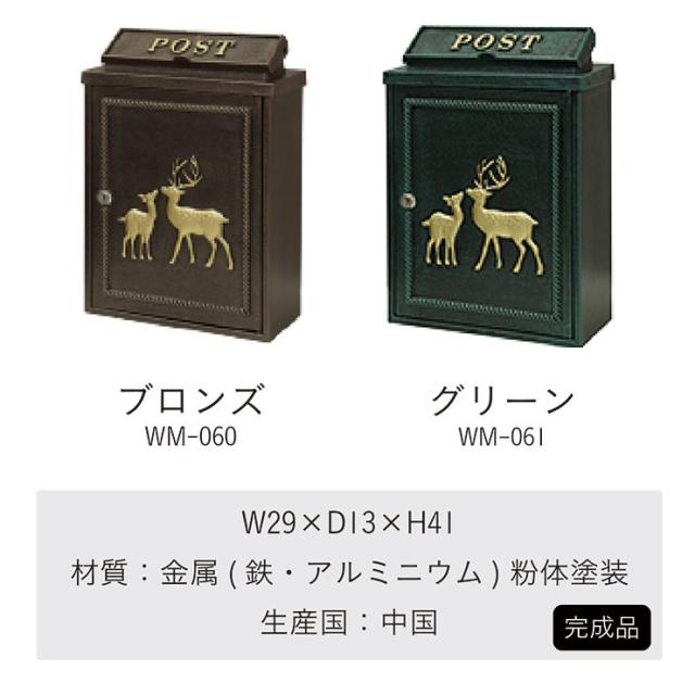 完成品 鋳物壁掛けポスト 郵便ポスト ポスト 郵便受け メールボックス 壁付け カギ付き シリンダー式 コンパクト 玄関 エントランス スタイリッシュ オシャレ おしゃれ Deer(ディアー) 2色対応