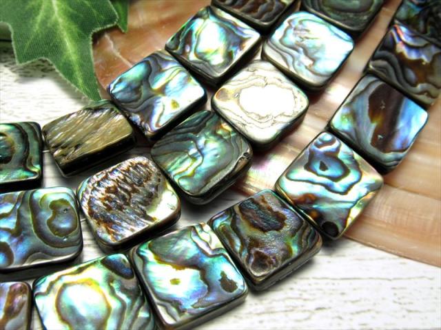 スクエア型 アバロンシェル アバローニ貝 一連 約38-40cm 幅約9mm 虹色光沢 ニュージーランド産 パワーストーン 天然石