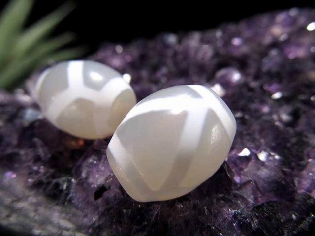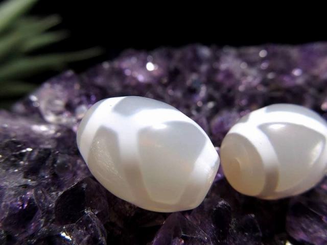 純真ホワイトカラー 亀甲長寿天珠 きっこうちょうじゅてんじゅ 縦サイズ:約15mm 1個売り 天然玉髄使用 ころんと可愛いミニ天珠 長命百歳・無病息災・事故防止・吉事招来 パワーストーン 天然石