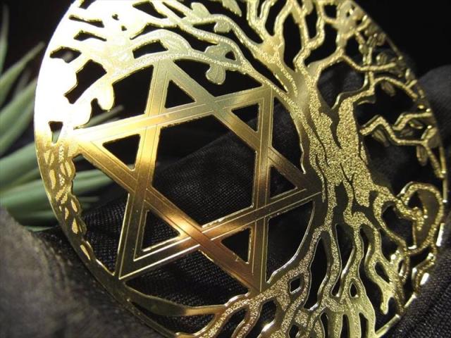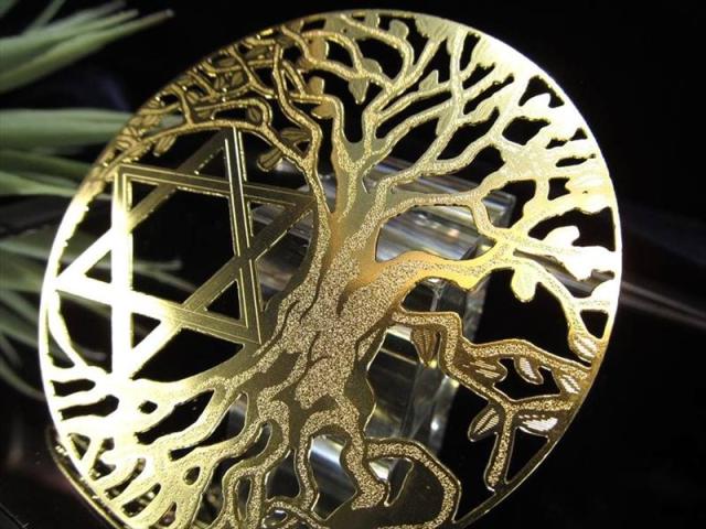 六芒星&ツリーオブライフ 直径約79mm 厚み約0.6mm 1個売り ゴールドカラー 瞑想・浄化・波動などのヒーリングに 秘めたエネルギーを呼び覚ます エナジーカード Kタイプ パワーストーン 天然石